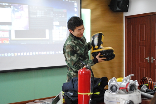 圖為消防員裝備介紹 此次專題講座進一步提高了大家對消防安全的重視,加強了防范意識,注意用火、用電安全,防止事故的發生,也深刻認識到了“生命至上,安全第一”的重要性,真正做到“防患于未然”。 楊雅芬