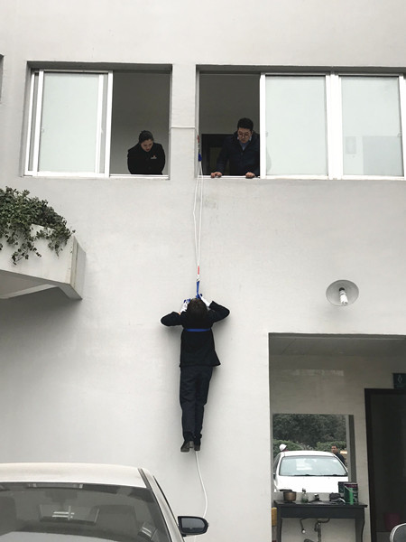 圖為高處逃生演練現(xiàn)場 理論培訓(xùn)結(jié)束后,溫嶺西收費(fèi)所隨即開展實(shí)地逃生演練,讓員工學(xué)習(xí)使用逃生繩從高處逃生的技能。在蔡教官的指導(dǎo)下,一名收費(fèi)員大膽地自我推薦,主動(dòng)嘗試此自救方法。 一切準(zhǔn)備就緒,該收費(fèi)員迅速爬上窗戶,利用逃生繩小心地沿著墻壁下滑,并順利落地。教官最后根據(jù)演練情況作點(diǎn)評。 此項(xiàng)技能有助于在火災(zāi)時(shí)多開辟一條逃生通道,減少人員傷亡。 通過此次全面的培訓(xùn)演練,溫嶺西收費(fèi)所將全力共抓消防安全工作,排除各類隱患。 鄭霞霞