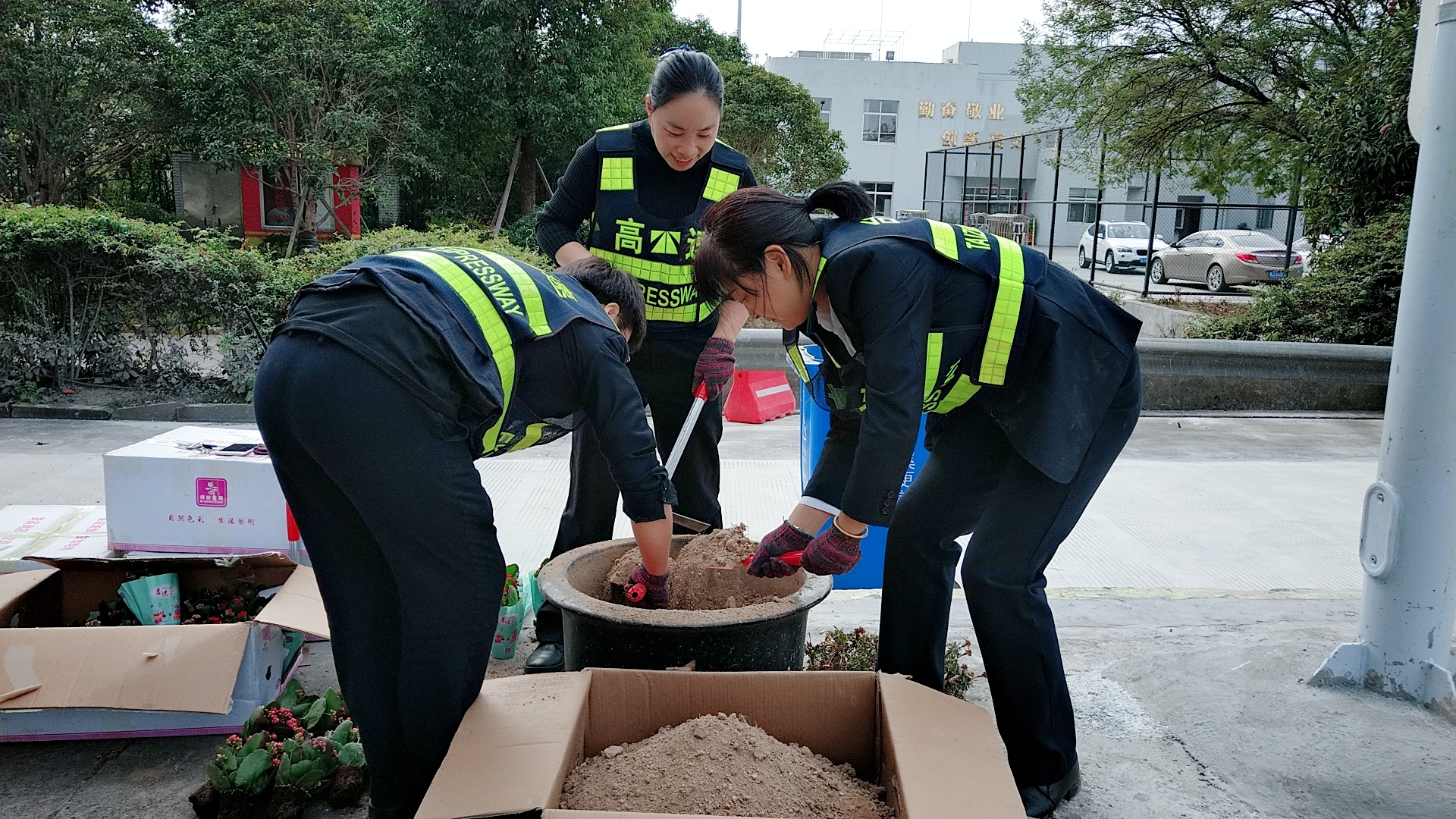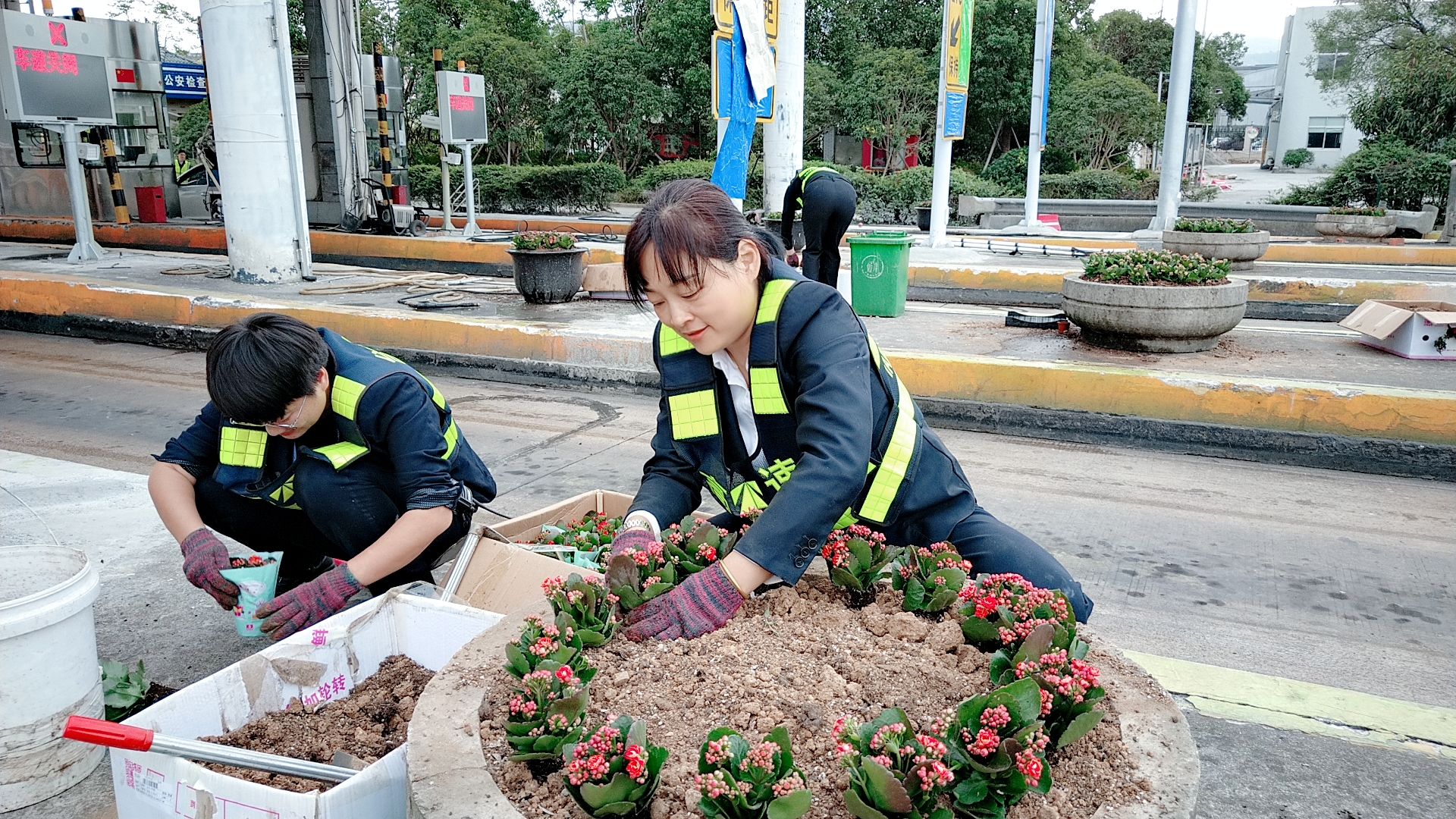 圖為栽種現(xiàn)場 現(xiàn)場,志愿者們身穿反光背心,拿著鋤頭、鐵鍬、水桶,帶著事先買來的小花苗,來到收費區(qū)域的島頭開始栽花活動。所領導班子成員身體力行,帶領大家投入到緊張的勞動中。大家挽起衣袖,不怕臟、不怕累,有的松土、有的種花、有的填土,有的澆水……有序地將一棵棵花苗栽進土壤。 通過大家的共同努力,經過近4個小時的時間,400棵樹苗被栽進了20多個大花盆中,美化了整個車道環(huán)境。 此次栽花活動增強了大家的生態(tài)環(huán)保意識和綠化意識,大家紛紛表示添花更要護花,要將綠化活動意識長期付諸實踐,共同建設美麗溫嶺西收費站。                                               鄭霞霞