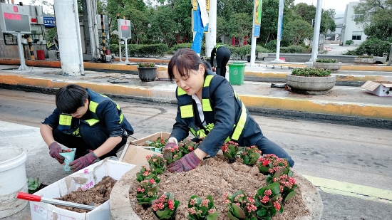 施展“栽花功夫” 細致推進綠化工作   溫嶺西收費所組織志愿者開展美化收費區(qū)域環(huán)境活動   11月21日上午,溫嶺西收費所黨員領導干部共同開展“打造美麗站所,美化收費區(qū)域環(huán)境”志愿服務活動。